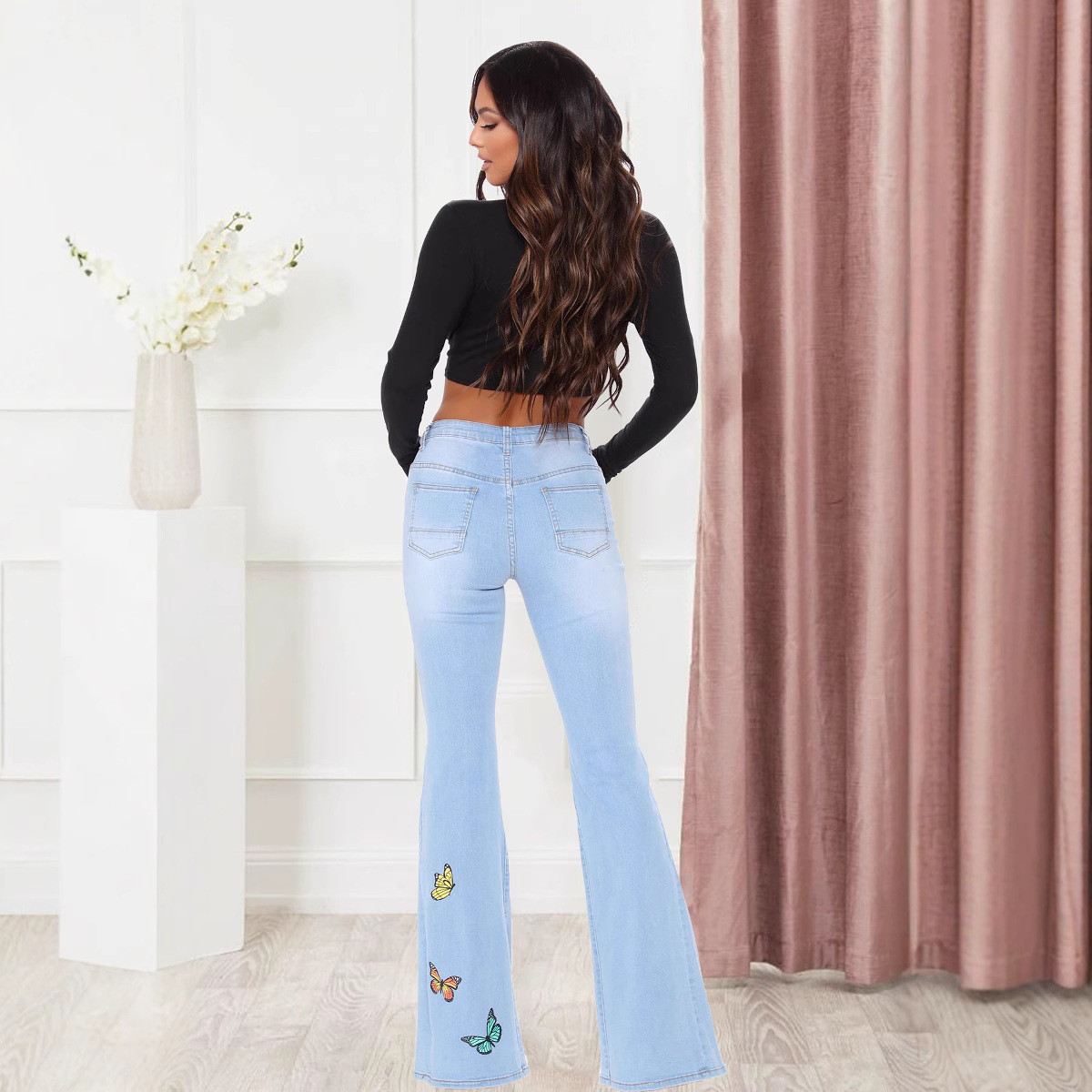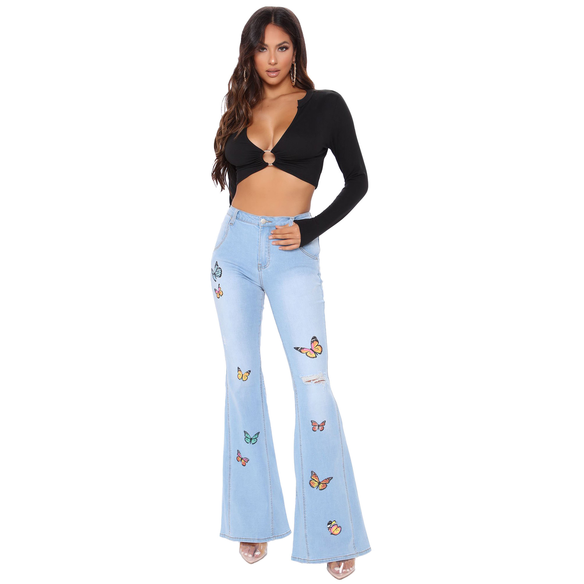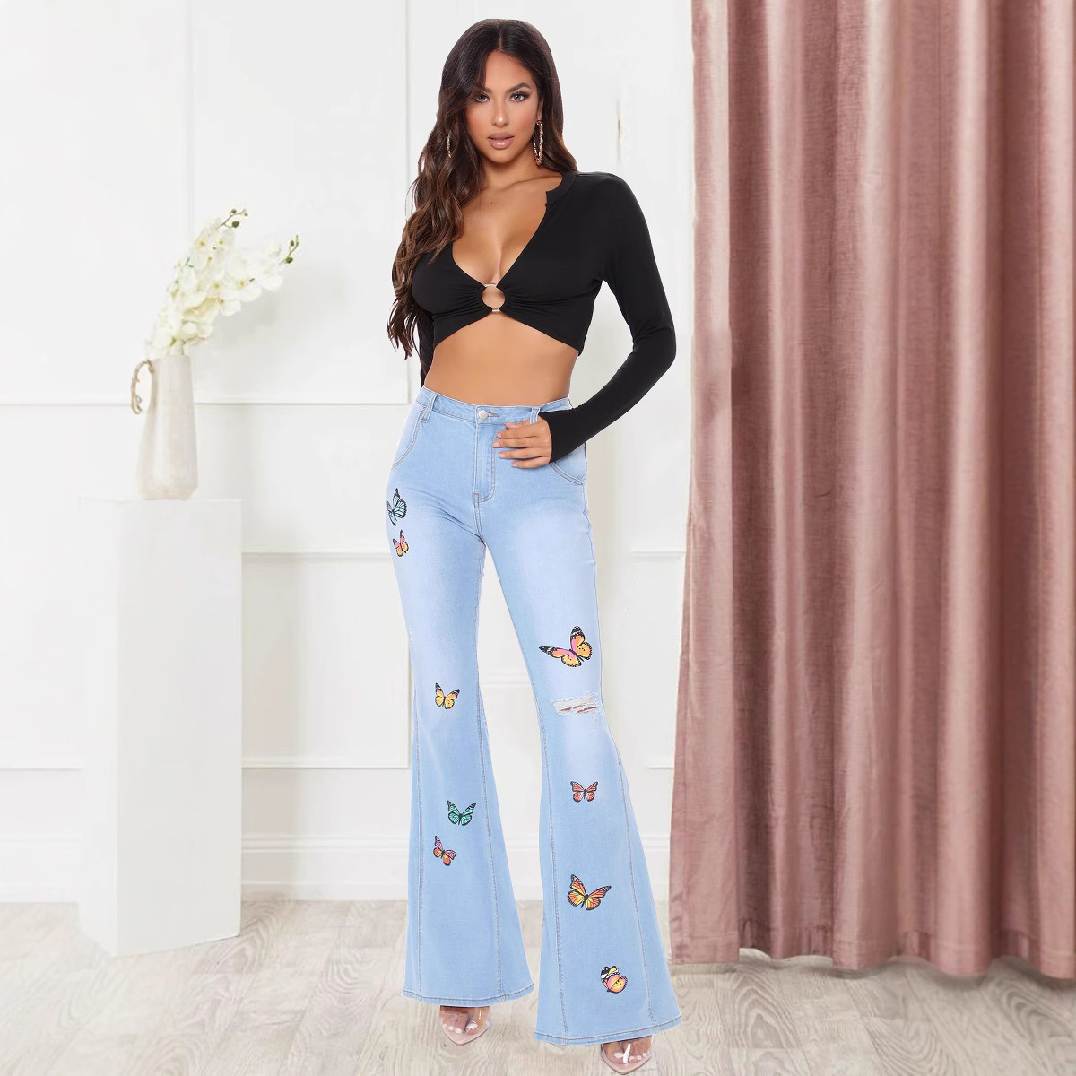Be the first to review “butterfly wide leg perforated high stretch flared pants” Cancel reply