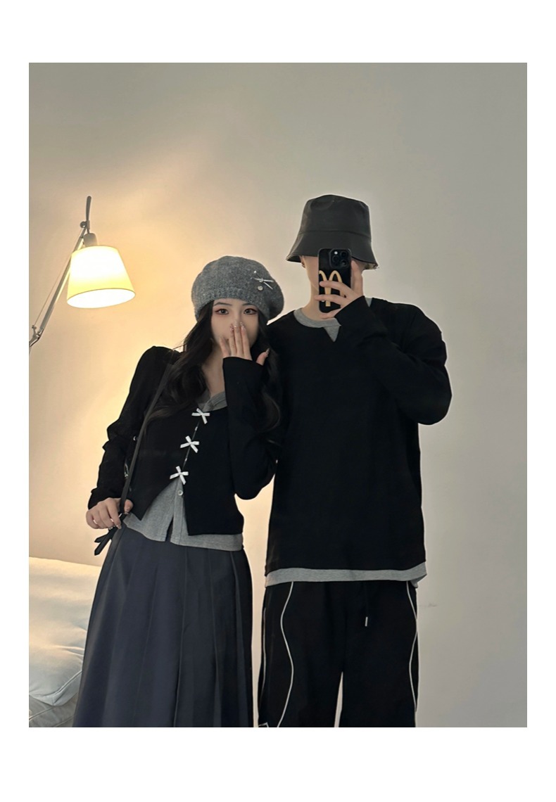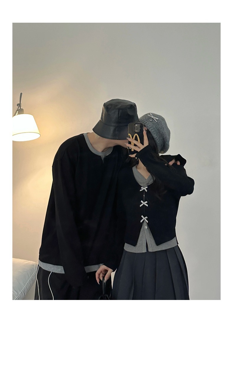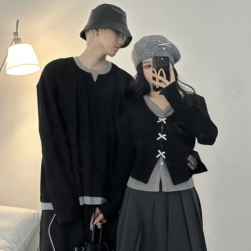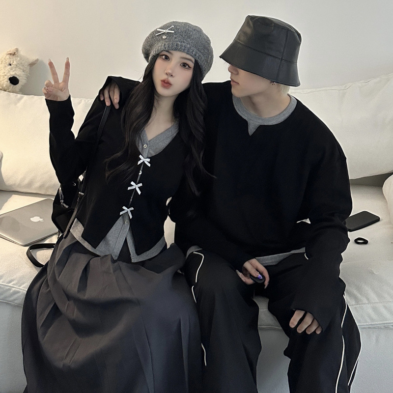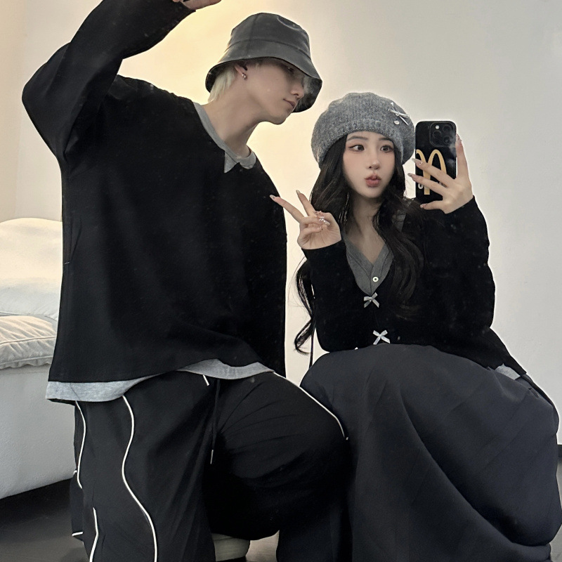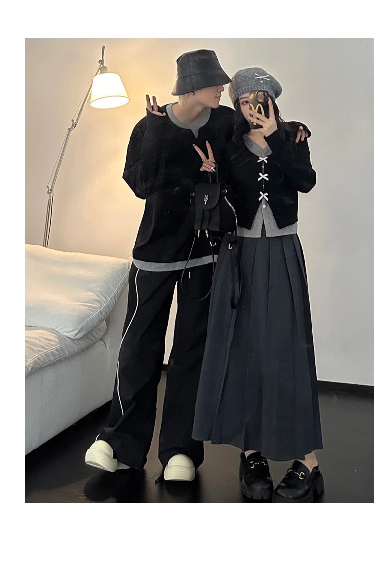 Couple Outfits Autumn Winter New Long Sleeve Elegant High-Quality Dress Two-Piece Set Men’s Loose Pullover Sweater