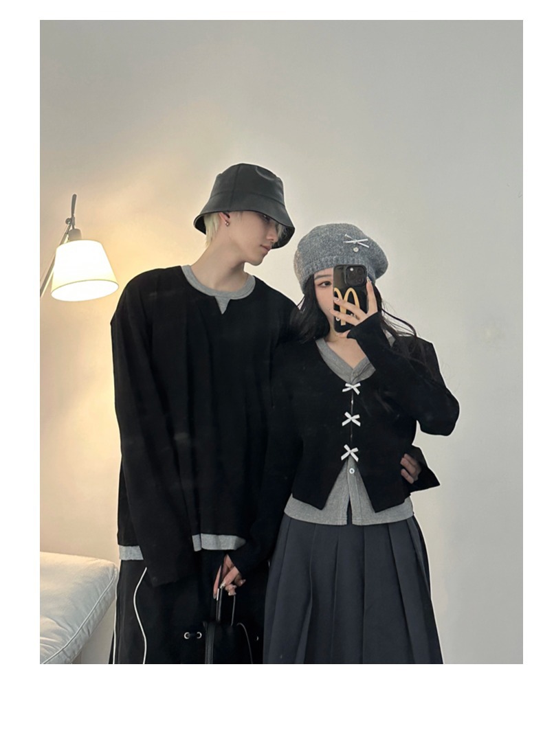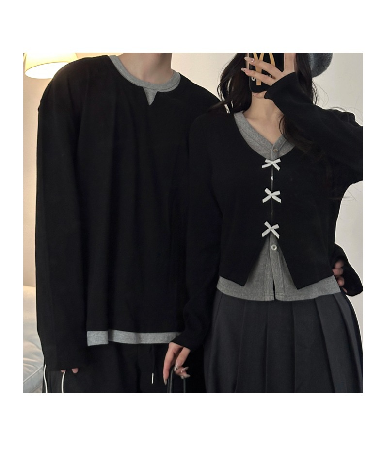 Casual Color-blocked Long Sleeve T-Shirt for Couples
