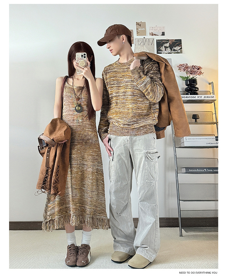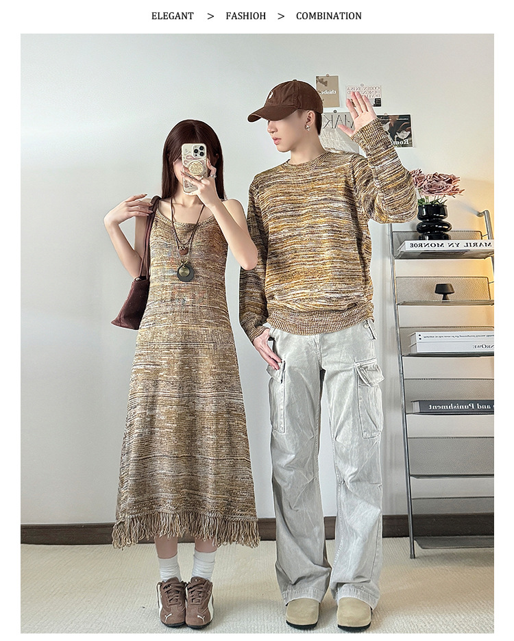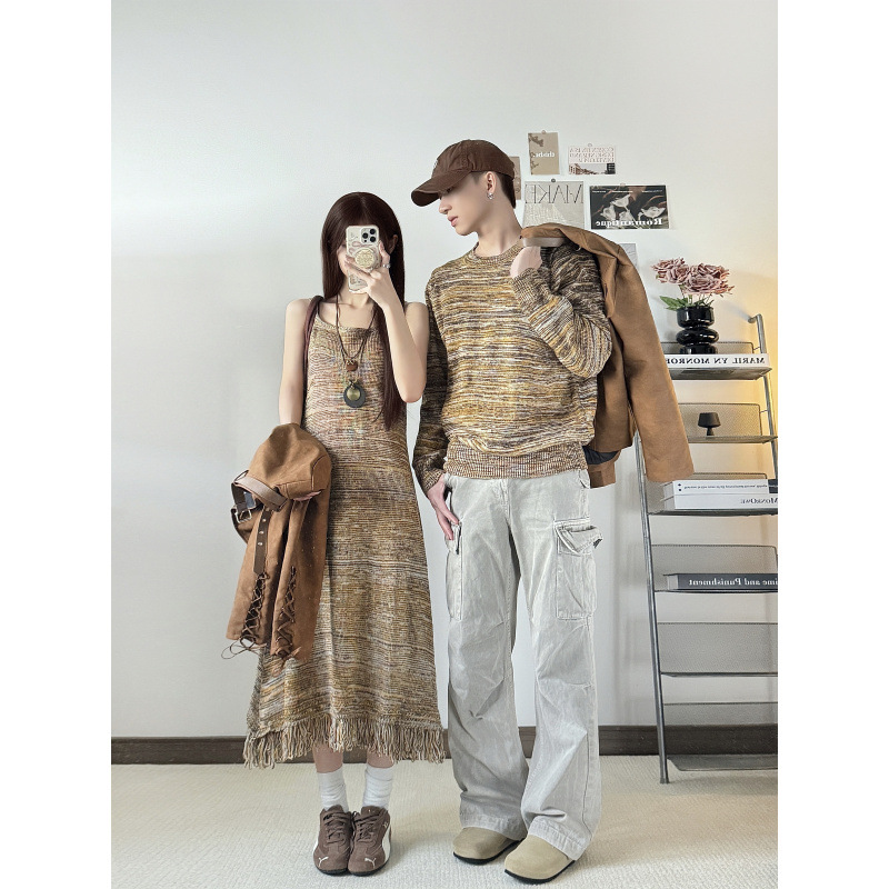 Couples’ Autumn/Winter New Knit Sweater Dress Two-Piece Set One Dress and One Top Fashionable INS Trend