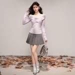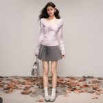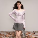 Elegant Purple One-Shoulder Off-Shoulder Knit Top for Women, Fitted Sexy Design Sweater, Casual Innerwear Top