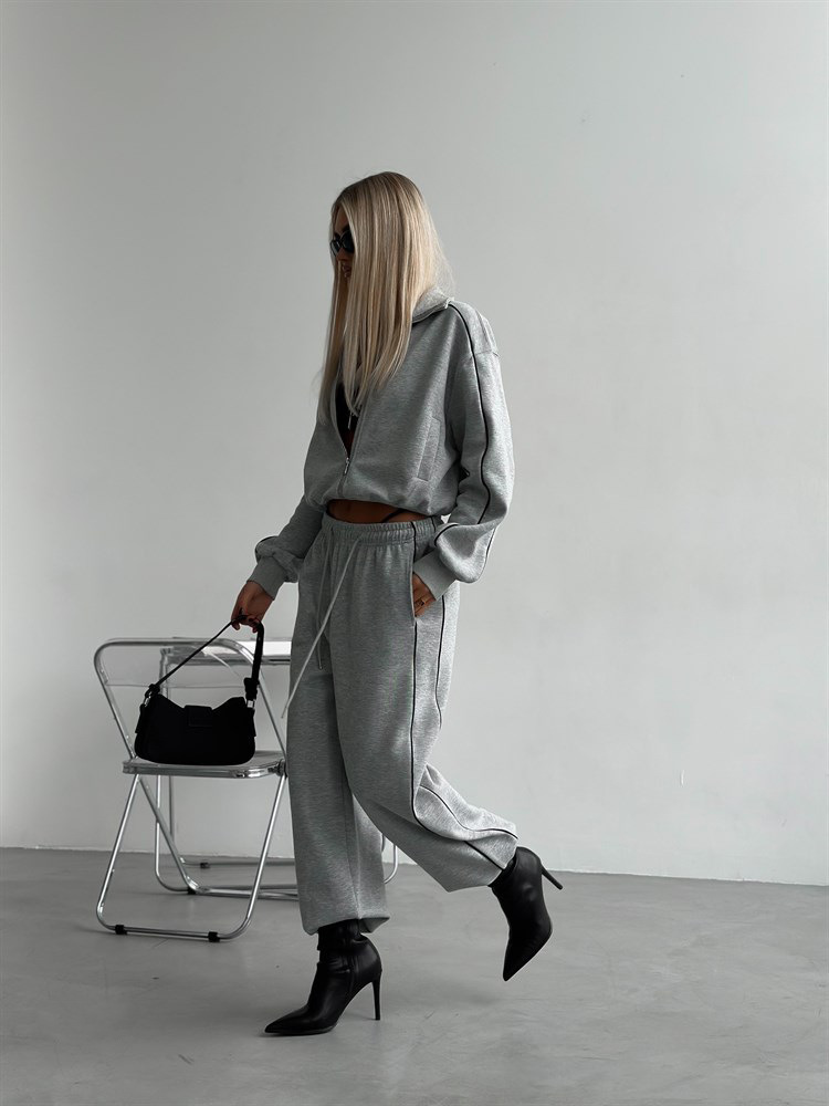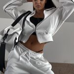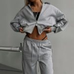 Fashionable Casual Style Women’s Zip-Up Cardigan & Drawstring Pants Two-Piece Set