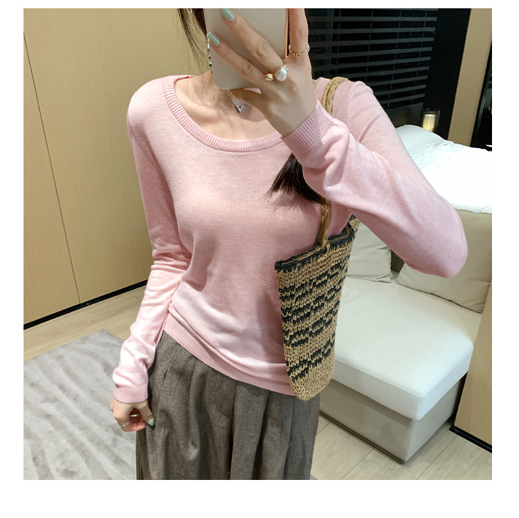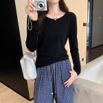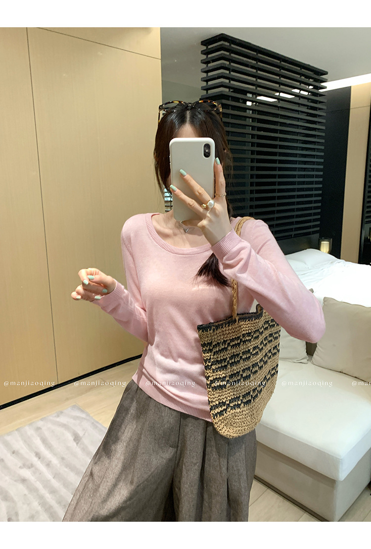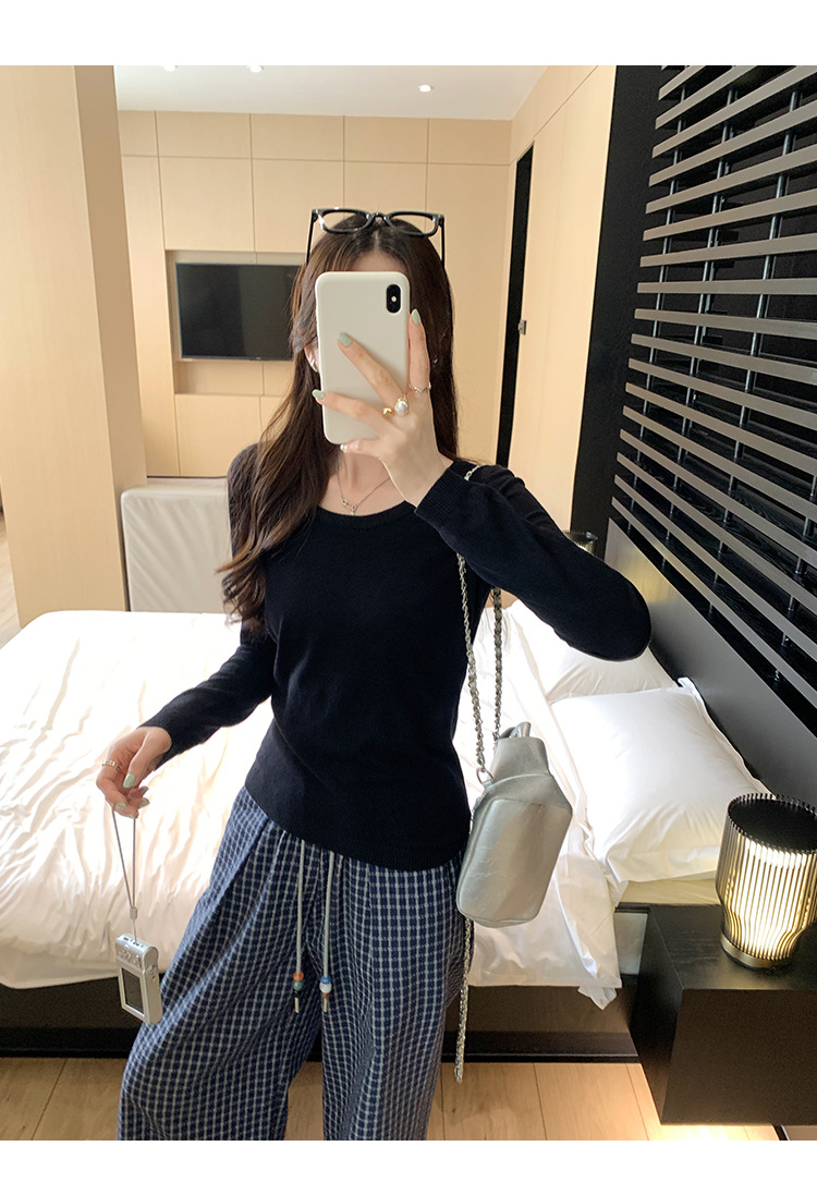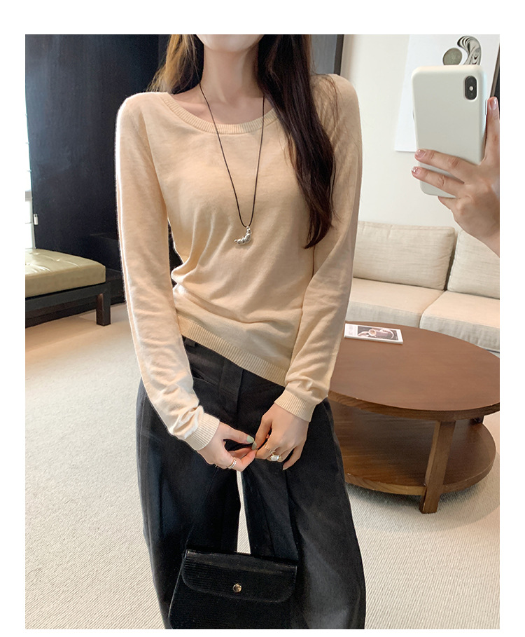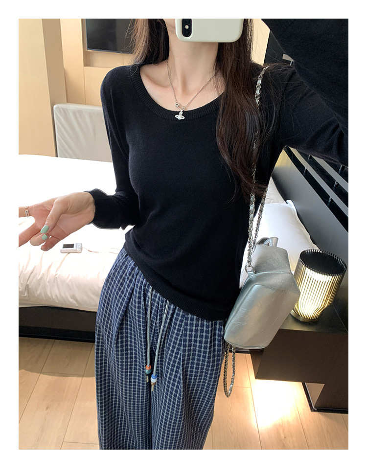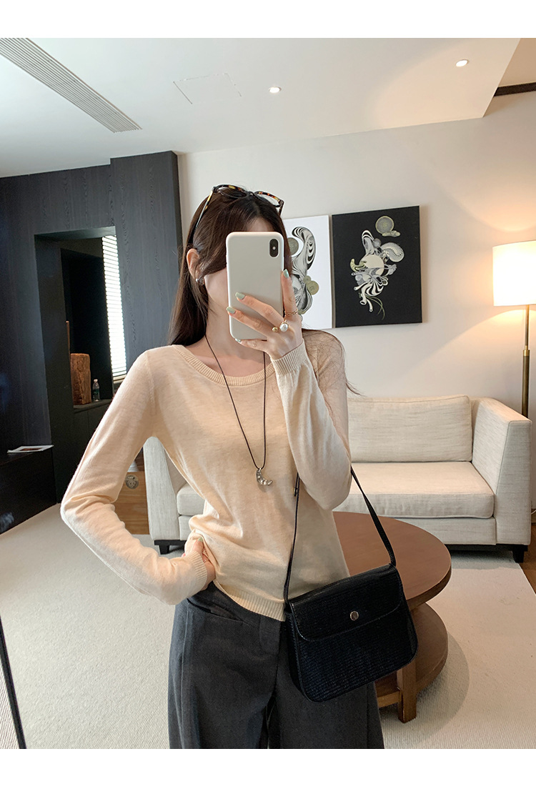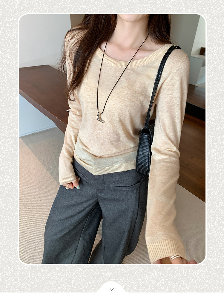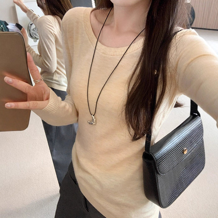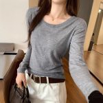 Soft Knit Long Sleeve Top for Women, Simple Solid Color Round Neck