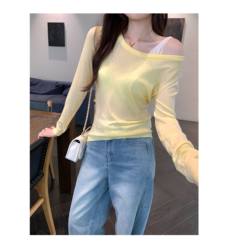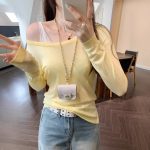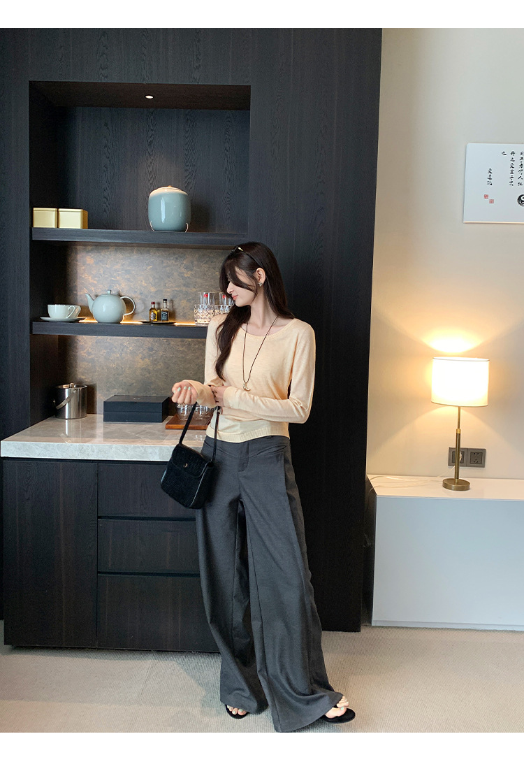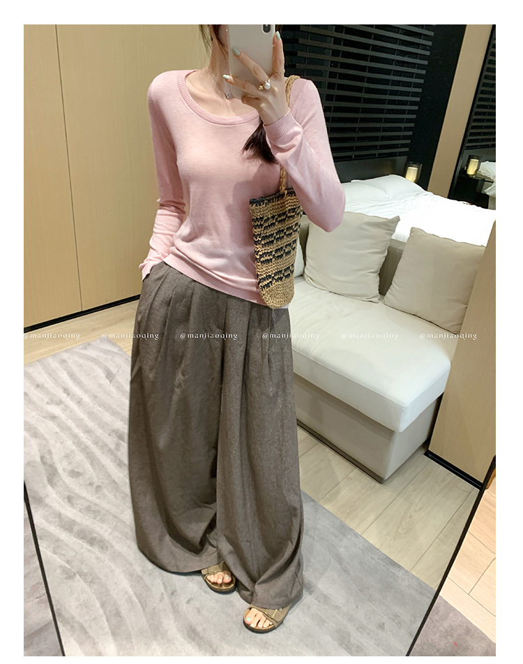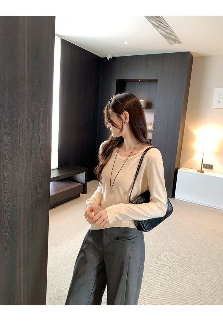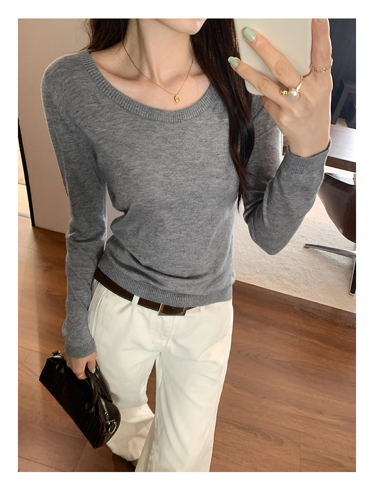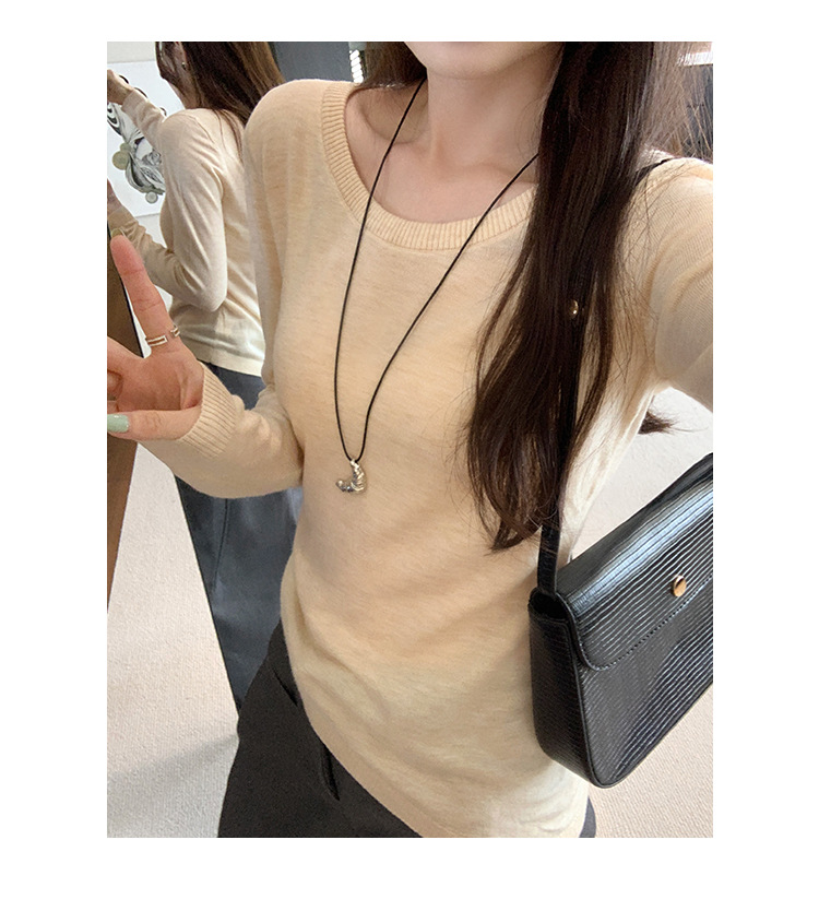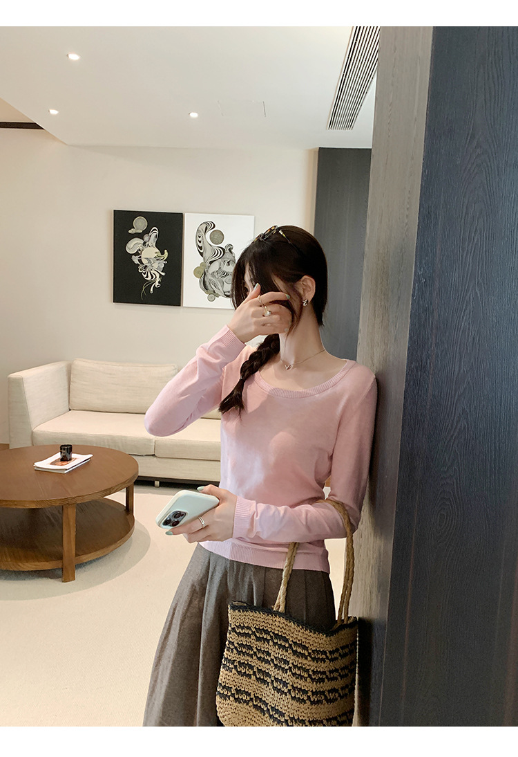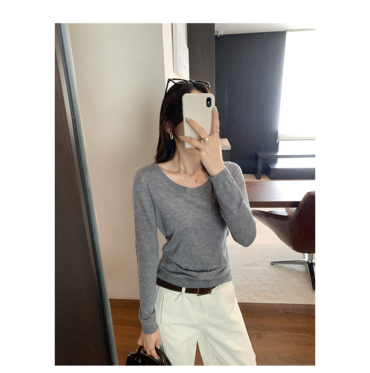 Soft Knit Long Sleeve Top for Women, Simple Solid Color Round Neck