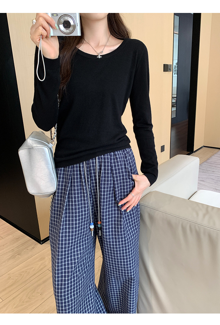 Soft Knit Long Sleeve Top for Women, Simple Solid Color Round Neck