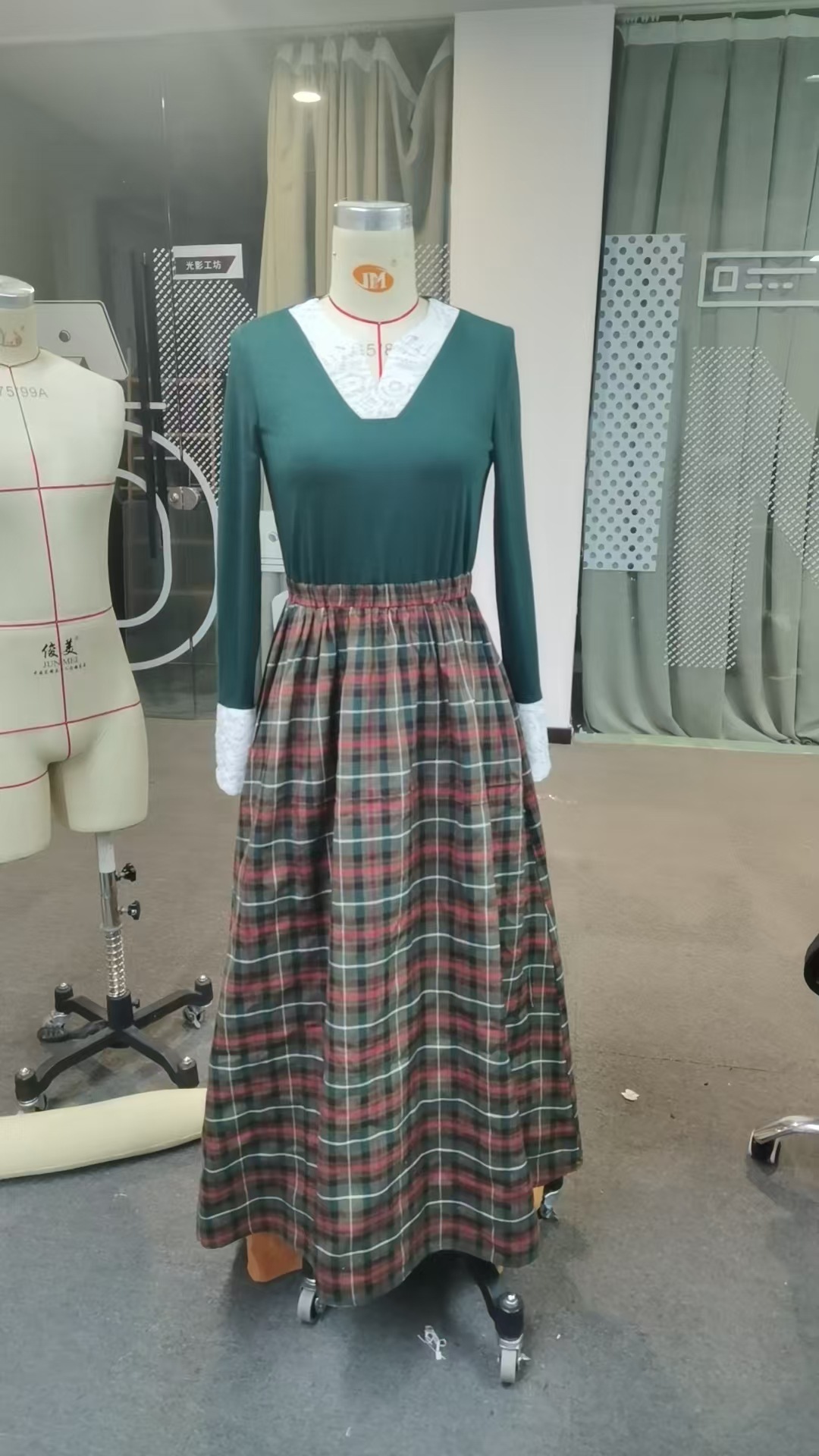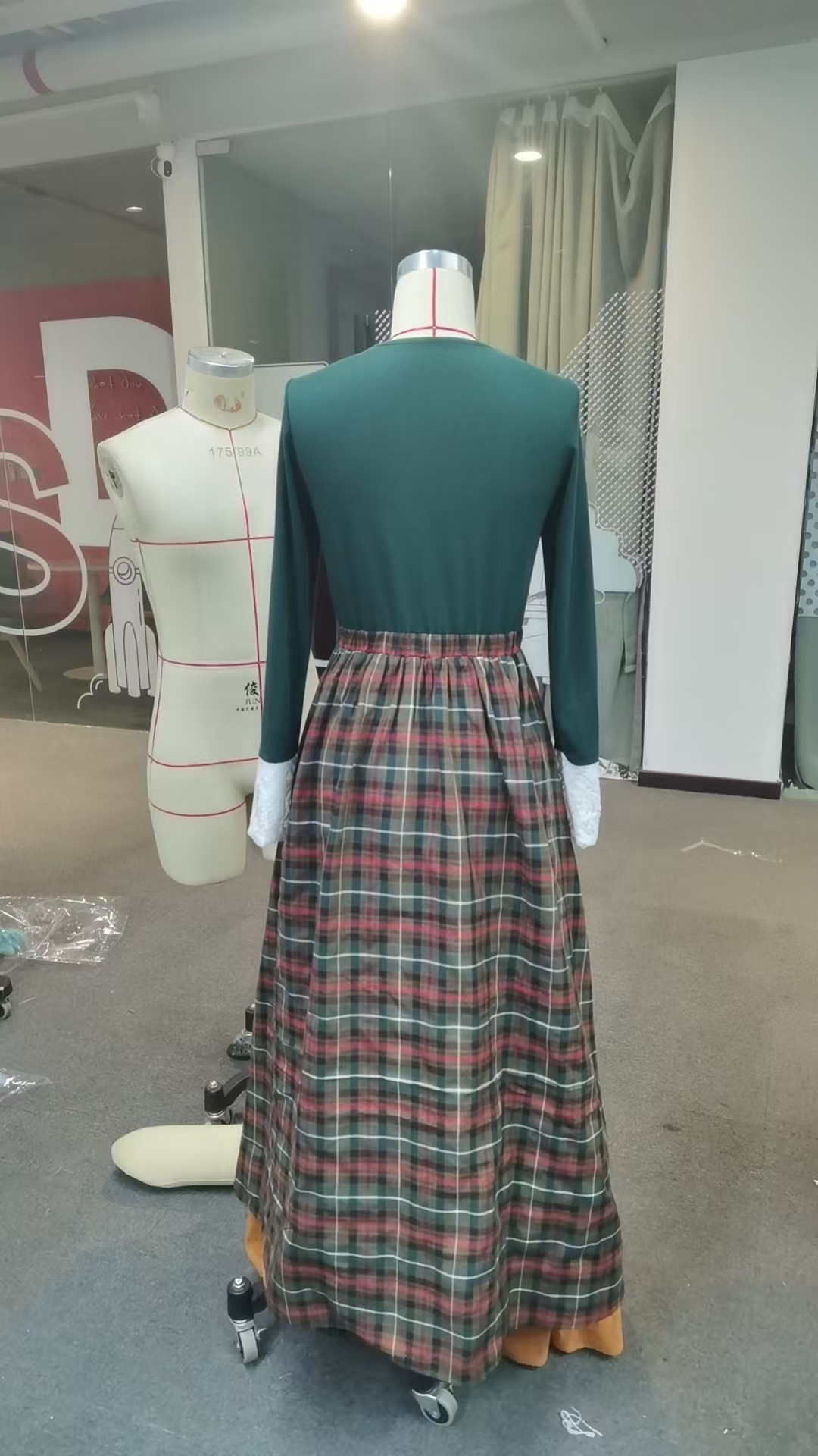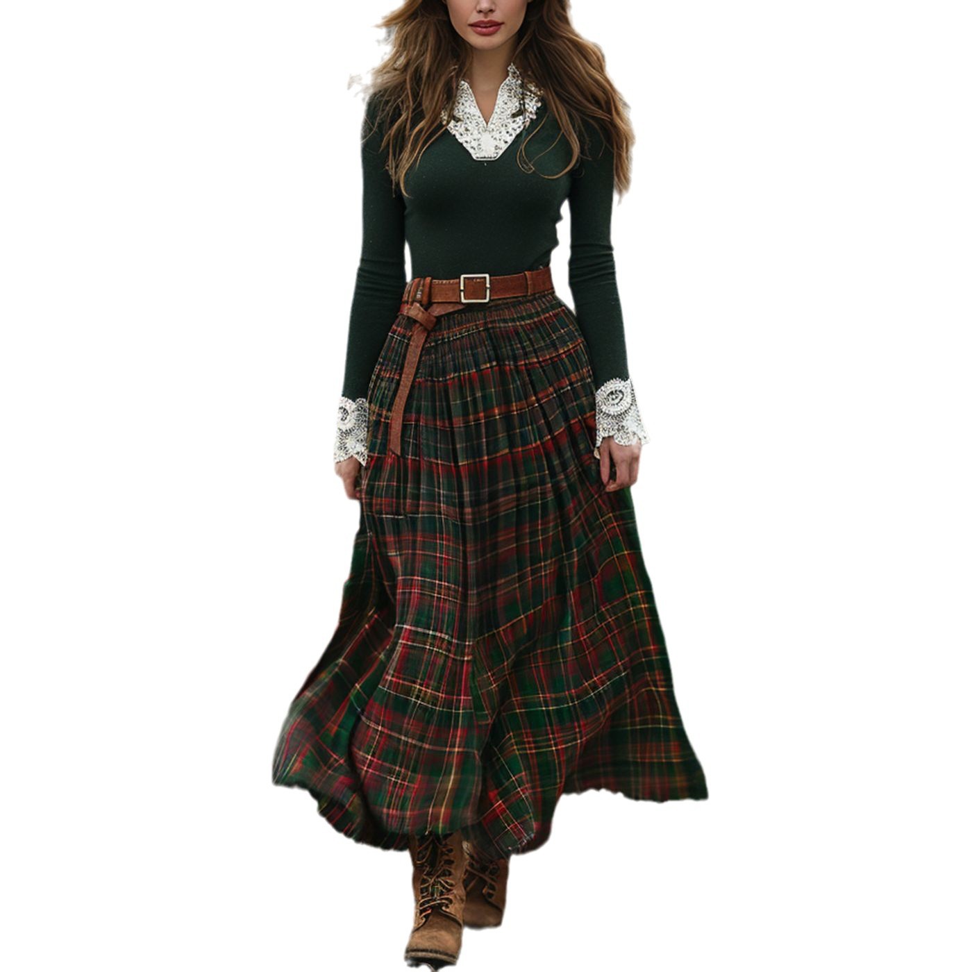 Women’s Autumn/Winter Plaid Maxi Dress, Vintage V-Neck Long Sleeve, Country Style Dress